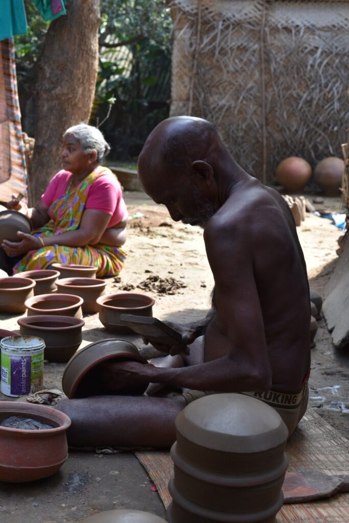 In the sleepy coastal town of Cuddalore, nestled near the serene shores of Pondicherry, lies a hidden treasure trove of tradition and craftsmanship: an old pottery couple whose hands have shaped clay into works of art for generations. As I had the privilege of stepping into their humble studio, I was transported back in time to an era where artistry and simplicity reigned supreme.